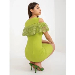 Limetkovo zelené koktailové šaty so širokým volánom.