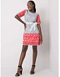 Šedomodré vzorované šaty s opaskom .