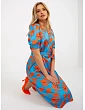 Modro-oranžové midi koktailové šaty s viazaním.