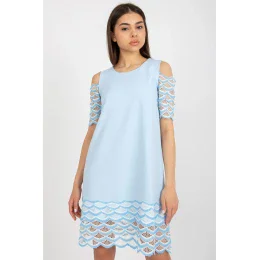 Koktailové šaty s krátkymi priliehavými rukávmi a okrúhlym výstrihom. Spodná časť šiat je zdobená prelamovaným zdobením.