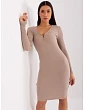 BASIC FEEL GOOD Tmavobéžové pruhované šaty s priliehavým strihom .