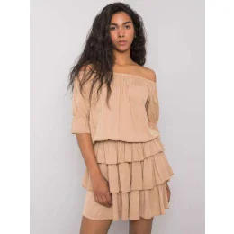 OCH BELLA Camelowa sukienka hiszpanka z falbanami.