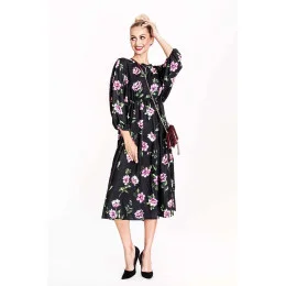 Pridanie recenzie k Ann Gissy Kvetinové kimono šaty s okrúhlym výstrihom čierne/ružové (XY202116)