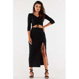 Maxi sukňa z mäkkého a príjemného úpletu. Sukňa je strihaná od pása nadol s rozparkom na nohaviciach v podobe zipsu. Strih sukne krásne zvýrazňuje postavu. Navrhnutá a ušitá v Poľsku.