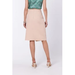 model 18360328 Sukně áčkového střihu se zavinovacími detaily béžová - STYLOVE