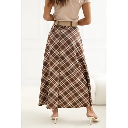 Elegantná maxi sukňa s rozkrokovým strihom, ktorá sa dokonale hodí do každodenných outfitov aj pracovných súprav. Model má klasický vzor v kockovanom štýle, ktorý celku dodáva elegantný a nadčasový charakter. Sukňa má pohodlný elastický pás, vďaka ktorému sa dobre prispôsobí postave a poskytuje pohodlie počas celého dňa. Ďalším prvkom je šnúrka v páse, ktorá zvýrazňuje pás a je štýlovým doplnkom modelu. Dĺžka maxi a rozkrokový strih zabezpečujú, že sukňa krásne sedí pri pohybe a dodáva oblečeniu ľahkosť a ženský charakter. Je vyrobená z materiálu kombinujúceho polyester a elastan, je odolná, mierne elastická a pohodlná na nosenie. Model bez zapínania zabezpečuje rýchle a jednoduché obliekanie.