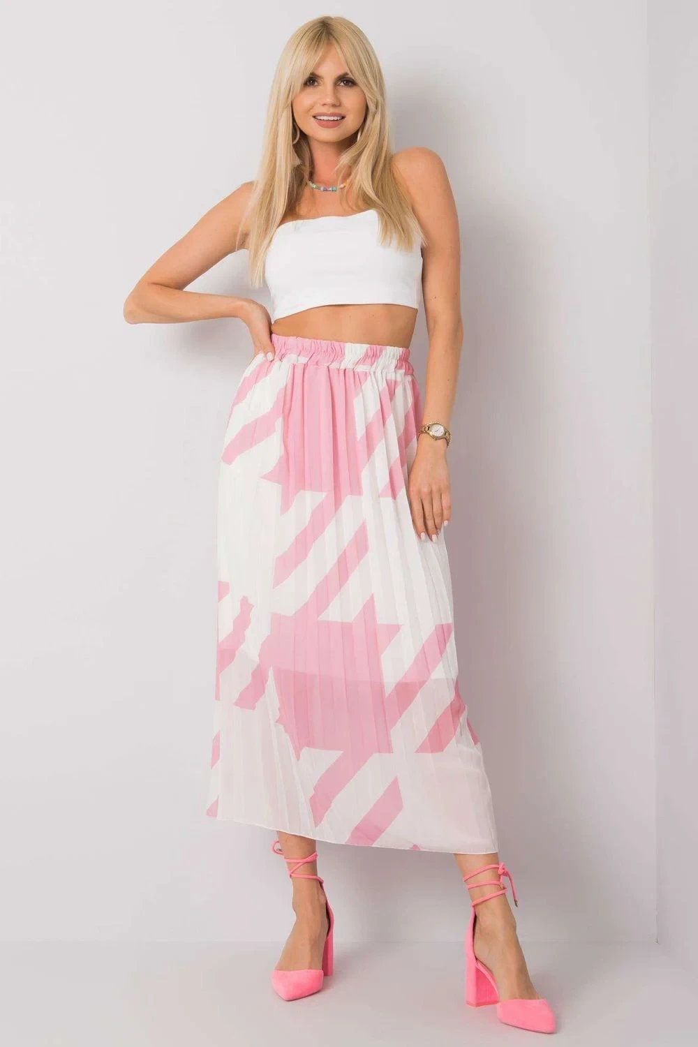 Plisovaná sukňa s elastickým pásom, vyrobená z látky so zaujímavým vzorom. Ideálna na leto. elastan 5%Polyester 50% Viskóza 45%