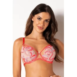 Táto mäkká podprsenka s kosticami, vytvorená pre nekonvenčné ženy, spája moderný dizajn s elegantným spracovaním. Jej jedinečný dizajn bočných panelov zaisťuje dokonalé zhromaždenie poprsia, čím zvýrazňuje ženské krivky. Košíčky s ozdobnou sieťovinou a výšivkou odlišujú tento model od ostatných a ponúkajú nevídanú úroveň estetiky. Sieťovina po obvode podprsenky, bez bočných kostíc. Zloženie látky zaisťuje dlhotrvajúci komfort pri nosení, ktorý je nevyhnutný