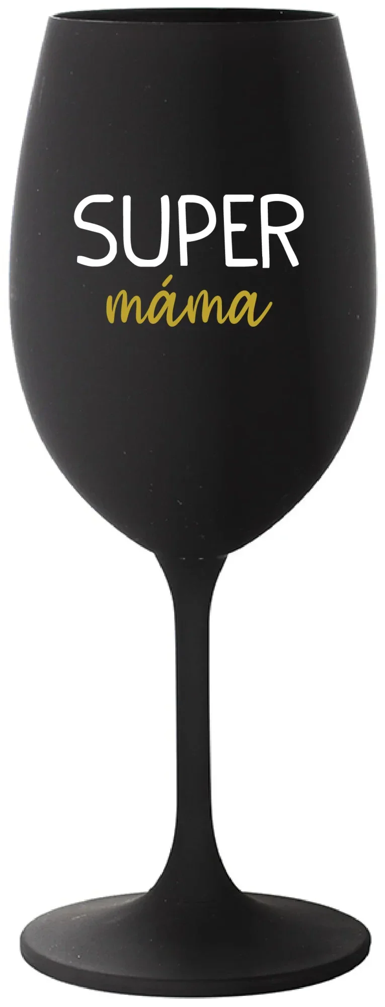 SUPER MÁMA - černá sklenice na víno 350 ml