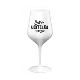SUPER UČITELKA - bílá nerozbitná sklenice na víno 470 ml