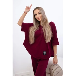 Súprava bavlnená blúzka + nohavice bordová