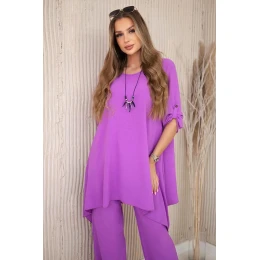 Súprava blúzka + nohavice s fialovým príveskom
