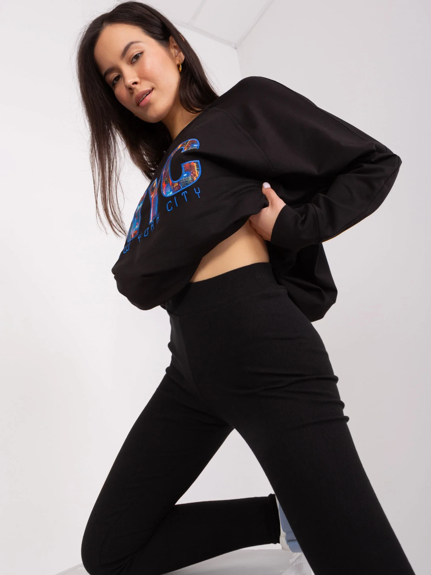 Rozmery súpravy v jednej veľkosti merané na plocho: šírka blúzky v podpazuší - 68 cm dĺžka rukávov - 58 cm, dĺžka blúzky - 80 cm, šírka legín v páse - 32 cm, výška pása - 28 cm, dĺžka legín - 98 cm.