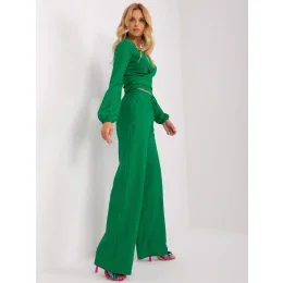 Rozmery súpravy vo veľkosti S/M merané na plocho: šírka blúzky v podpazuší - 54 cm, dĺžka blúzky - 51 cm, dĺžka rukávov - 60 cm, šírka nohavíc v páse - 35 cm, výška pása - 32 cm, dĺžka nohavíc - 113 cm.
