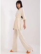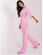Rozmery súpravy vo veľkosti S/M merané na plocho: šírka blúzky v podpazuší - 60 cm, dĺžka rukávov - 40 cm, dĺžka blúzky - 78 cm, šírka nohavíc v páse - 32 cm, výška pása - 33 cm, dĺžka nohavíc - 114 cm.
