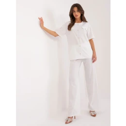 Rozmery súpravy vo veľkosti S/M merané na plocho: šírka blúzky v podpazuší - 52 cm, dĺžka blúzky - 65 cm, šírka nohavíc v páse - 34 cm, výška postavy - 32 cm, dĺžka nohavíc - 108 cm.