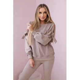 Súprava mikiny s mašľou na rukávoch a legín tmavobéžová