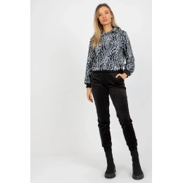 Velúrová súprava pozostávajúca z mikiny a nohavíc. Blúzka so zvieracou potlačou, dlhými rukávmi a kapucňou. Klokanie vrecko na prednej strane. Dlhé nohavice s nakladanými vreckami.