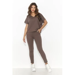 Elegantný a zároveň pohodlný pletený komplet, ktorý kombinuje oversize košeľu s dlhými nohavicami. Voľná blúzka so širokými krátkymi rukávmi zdobená pôvabnou plaketou harmonicky ladí s ladiacimi dlhými nohavicami v tvare trubky, ktoré sú po celej dĺžke zakončené prešívaním. Nohavice majú praktické bočné vrecká. V tomto súbore sa budete cítiť ležérne a sebaisto, pričom zostane elegantný. Skvele sa hodí na nosenie do práce, a ak chcete urobiť dojem, nezabudnite ho skombinovať s ihličkovými podpätkami. Tento komplet je dokonalou kombináciou zmyselného štýlu a pohodlia pre sebavedomé ženy.