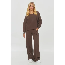 Dresová souprava je ideální nabídkou pro lidi, kteří ocení pohodlí a styl v každodenních, neformálních stylizacích. Dres se skládá z volného svetru a širokých kalhot, co zajišťuje maximální pohodlí nošení. Celkově je vyroben z měkkého, příjemného materiálu, který se ideálně hodí na chladnější dny. Svetr má klasický, jednoduchý střih s dlouhými rukávy a mírně spadající ramena. Je zakončen kulatým výstřihem. Kalhoty mají široké nohavice, co dodává celkovému vzhledu módní, oversized charakter a prošití podél nohavic opticky prodlužuje nohy. Elastický pás v pasu zajišťuje pohodlné přizpůsobení. Tento set se ideálně hodí na každodenní výlety, nákupy nebo setkání s přáteli. Tato souprava je kombinací funkčnosti a stylu, ideální pro lidi, kteří chtějí být pohodlní, aniž by se vzdali módního vzhledu.