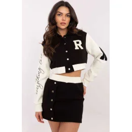 Elegantná a pohodlná dámska súprava v ležérnom štýle, ideálna na každodenné príležitosti. Je vyrobená z odolného polyesteru s podšívkou a poskytuje pohodlie pri nosení a moderný vzhľad. Mikina s krátkou dĺžkou má dlhé rukávy, stojačik a praktické zapínanie na cvočky, ktoré zdôrazňuje jej športový charakter. Ozdobné nášivky na rukáve a vpredu a výšivka na druhom rukáve jej dodávajú originalitu. Sukňa s krátkou dĺžkou má široký pás, ktorý zabezpečuje pohodlné nosenie a zvýrazňuje pás. Hladký vzor súpravy jej dodáva univerzálnosť, dobre sa hodí k minimalistickým aj výraznejším štýlom. Je to praktická a módna súprava pre ženy, ktoré chcú spojiť pohodlie s výrazným dizajnom.