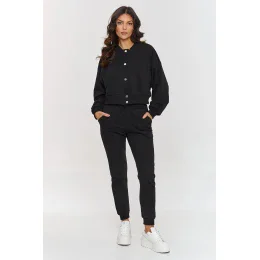 Kompletní 3v1 s bomberem je návrh, který přinese čerstvost každému každodennímu outfitu. Sada se skládá z lehkého bomberu, pruhovaného topu a volných kalhot, vytvářející módní, souvislý celek. Krátký bomber díky zapínání na kovové knoflíky získává charakter a funkčnost. Lem a manžety s elastickými žebry dodávají sportovní charakter, co skvěle ladí s celým outfitem. Klasické kalhoty s jednoduchým střihem zajistí volnost pohybu a boční kapsy zdůrazňují jejich praktičnost. Pružný top díky jednoduché konstrukci skvěle ladí s volnou mikinou a kalhotami, zdůrazňující siluetu a zároveň poskytující stylový vzhled. Je to sportovní set, který se osvědčí jak na setkání s přáteli, tak na lenivé víkendy. Vytvořte si svůj každodenní, stylový vzhled s touto sadou, která kombinuje nadčasovou pohodlí a styl.