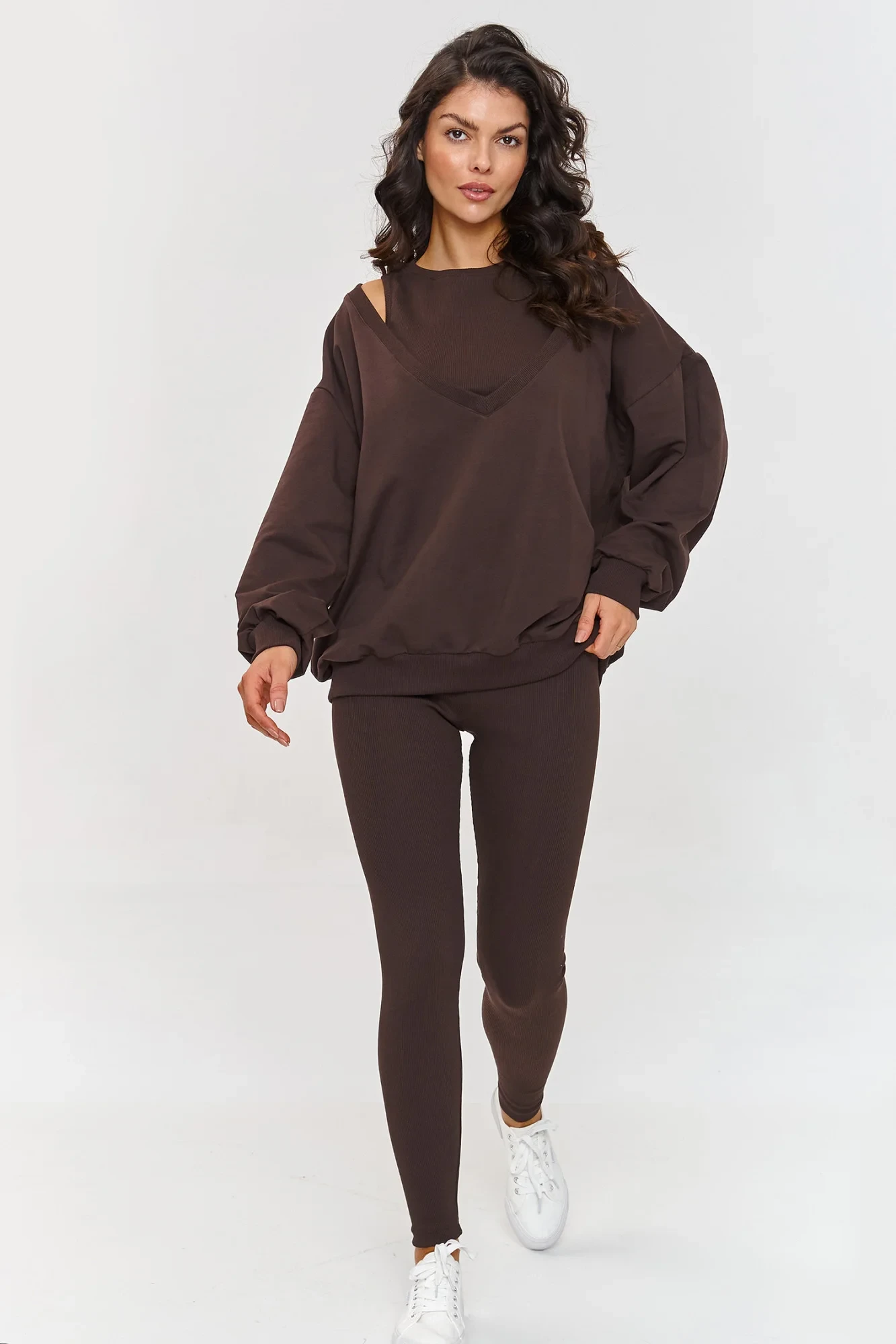 Sada oblečení je ideální volbou pro ženy hledající pohodlí a styl na každý den. Sestava se skládá z oversized mikiny, pruhovaného topu a legín, které společně tvoří souvislý, módní celek. Přiléhavé, pruhované legíny skvěle zdůrazňují postavu, zajišťujíce zároveň pohodlí a komfort. Přiléhavý top a mikina volného střihu s hlubokým výstřihem do širokého lodičkového výstřihu dokonale vyváží celkový vzhled a přidávají ženské kouzlo. Materiál je měkký a příjemný na dotek, ideální na každodenní nošení. Kombinace klasické mikiny s topem a pruhovanými legínami dává outfitu lehce sportovní charakter. Díky univerzálnosti se tato sada skvěle doplňuje s bílými teniskami, vytvářející pohodlný outfit na každý den. Hledáte sadu, která spojuje eleganci s pohodlím? Sada oblečení s topem a legínami je must-have ve vaší šatníku! Ideální kombinace pohodlí, funkčnosti a módního designu. Vhodný na různé příležitosti, od bavlna 90 %