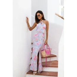 Elegantný a zmyselný dámsky komplet vyrobený z jemne lesklého saténu, ideálny na špeciálne príležitosti alebo letné večery. Blúzka sa zaväzuje za krkom, čím jemne zvýrazňuje ramená a dekolt, zatiaľ čo elastický pás na chrbte zaručuje pohodlné prispôsobenie sa postave. Dlhá sukňa s efektným rozparkom do polovice stehien dodáva ľahkosť a ženský pôvab a zvýrazňuje nohy v pohybe. Tento komplet spája klasický a moderný štýl, je skvelou voľbou na rande, večierok alebo letný večer.