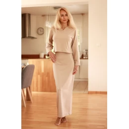 Súprava sa skladá zo šiat Irving a mikiny Arizona. Sú vyrobené z pohodlnej džersejovej sieťoviny s prídavkom elastanu. Súprava Irving sa bude páčiť ženám, ktoré uprednostňujú športový štýl a ocenia pohodlie. Dlhé rovné šaty s odnímateľnými ramienkami sú ideálne na teplejšie dni. V kombinácii s mikinou vytvárajú outfit, ktorý obstojí, keď sa ochladí. Dĺžka v tabuľke sa vzťahuje na mikinu.