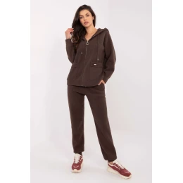 Tento dámský volný set je ideální nabídkou na chladnější dny, stylový, pohodlný a příjemně obalující. Vyrobený z vysoce kvalitní směsi vlny, viskózy, angora a polyesteru poskytuje vynikající tepelný komfort, měkkost a odolnost. Mikina se zapínáním na zip má praktickou kapuci, dlouhý rukáv a velké nášité kapsy na přední straně, které dodávají charakter a funkčnost. Její jednoduchý, hladký vzor se skvěle hodí k různým doplňkům a osvědčí se jak doma, tak na procházce. Kalhoty s dlouhými, sevřenými nohavicemi mají vysoký pas a vázání v pase, díky čemuž skvěle padnou k postavě. Boční, vsunuté kapsy přidávají praktičnost bez narušení minimalistické formy. Tento set je ideální pro každodenní aktivity, spojuje volnost pohybu, teplo a stylový vzhled v jednom outfitu.