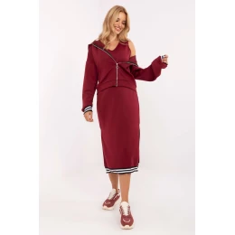 Tento dámsky komplet v ležérnom štýle je ideálnou voľbou na každodenné nosenie a spája v sebe pohodlie a ženský charakter. Je vyrobený z mäkkého maslového materiálu (viskóza s prídavkom elastanu), ktorý očarí svojou jemnosťou, nežnosťou a výnimočným pocitom. Mikina s kapucňou na zips má dlhé rukávy, praktické vrecká a ozdobnú gumu na manžetách, čo dodáva kompletu športový nádych. Šaty v midi dĺžke s ozdobným zakončením, širokými ramienkami a srdcovým výstrihom dokonale ladia s mikinou a vytvárajú ucelený a moderný vzhľad. Tento komplet je vhodný na každodenné nosenie, zaručuje pohodlie a voľnosť pohybu a zároveň pôsobí štýlovo a moderne.