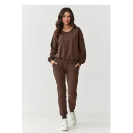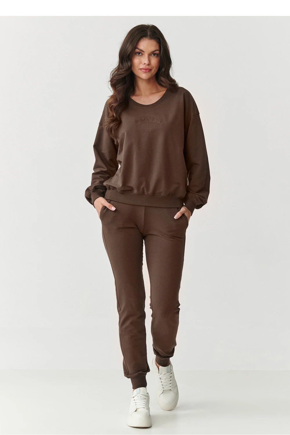 Tento dámský teplákový set je ideální kombinací pohodlí a stylového, každodenního looku. Vyrobený z vysoce kvalitního materiálu ve složení 95% bavlna a 5% elastan, poskytuje měkkost, pružnost a prodyšnost, díky čemuž se skvěle hodí po celý rok. Mikina má volný, ležérní střih s prodlouženou linií ramen, co jí dodává moderní charakter a skvěle padne na každé postavě. Na přední straně je umístěné malé, vyšívané logo, které jemně zdůrazňuje značkový charakter setu. Doplňující kalhoty s elastickým pasem a pohodlnými bočními kapsami jsou ideální volbou na každý den, spojující funkčnost s ženským střihem. Nohavice jsou zakončené lemy, díky čemuž se kalhoty dobře drží na místě a zdůrazňují nohy. Tento set se hodí jak jako domácí sada, tak i jako městský outfit. Minimalistický design, perfektní střih a pohodlí každý den jsou povinným prvkem moderního šatníku! bavlna 95%