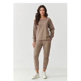Pohodlný a stylový dámský teplý set je ideální volbou pro ženy, které ocení pohodlí aniž by musely ustoupit od módního vzhledu. Vyrobený z vysoce kvalitního materiálu, kombinace bavlny a elastanu poskytuje měkkost, pružnost a odolnost, díky čemuž se skvěle hodí jak doma, tak na procházku, nákupy nebo do práce. Mikina má klasický, volný střih s dlouhými rukávy zakončenými pružnými lemy, které dodávají sportovní charakter. Kruhový výstřih zase zdůrazňuje její univerzálnost. Klasické kalhoty jsou pohodlné díky volnému střihu a vybavené praktickými velkými kapsami, které nejen skvěle vypadají, ale jsou také velmi funkční. Navíc na spodním lemu nohavic jsou záložky, které vytvářejí efekt jemného zužení směrem dolů. Tepláková souprava se nekrčí, dobře snáší praní a udržuje si svůj tvar, díky čemuž Ti bude sloužit po mnoho sezón.