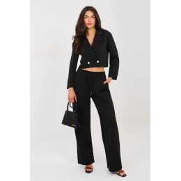 Elegantní set se dresovým oblečením: sako a kalhoty, které spojují eleganci s každodenním pohodlím. Vyrobena z velmi příjemného materiálu typu měkký máslo, jemného a hladkého, poskytuje maximální pohodlí a skvělé přizpůsobení postavě. Sako s límci a límečkem, zapíná se na knoflíky, dodává celkovému vzhledu moderní, volnočasový charakter. Dlouhý rukáv zdobený knoflíky je stylovým detail, který zdůrazňuje precizní zpracování. Kalhoty s vysokým pasem, dlouhými přímými nohavicemi a vázaným pásem zaručují pohodlí a volnost pohybu. Model je vybaven bočními kapsami, které zvyšují funkčnost setu. Hladký vzor a pečlivě vybraná směs polyesteru, viskózy a elastanu zajišťují, že set se skvěle hodí jak do každodenního stylu, tak do práce v moderním, pohodlném provedení. Je to ideální nabídka pro ženy, které oceňují styl, pohodlí a všestrannost v jednom setu.