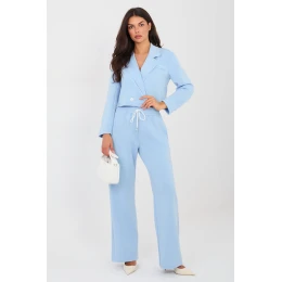 Elegantní dresový set: sako a kalhoty, které spojují eleganci s každodenním pohodlím. Vyrobeno z velmi příjemného na dotek materiálu typu měkké máslo, jemného a hladkého, poskytuje maximální pohodlí a skvěle padne k postavě. Sako s límci a límečkem a zapínáním na knoflíky dodává celku moderní, ležérní charakter. Dlouhý rukáv zdobený knoflíky je stylovým detail, který zdůrazňuje precizní provedení. Kalhoty s vysokým pasem, dlouhými rovnými nohavicemi a vázaným pásy zaručují pohodlí a volnost pohybu. Model je vybaven bočními kapsami, které zvyšují funkčnost setu. Hladký vzor a pečlivě vybraná směs polyesteru, viskózy a elastanu zaručují, že set se skvěle hodí jak do každodenních outfitů, tak i do práce v módním a pohodlném provedení. Ideální volba pro ženy, které ocení styl, pohodlí a univerzálnost v jednom setu.