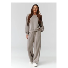 Moderná a pohodlná dámska súprava nadmernej veľkosti, ktorá sa dokonale hodí do každodennej štylizácie. Súprava pozostáva z voľnej mikiny nadmernej veľkosti a pohodlných nohavíc s rovnými nohavicami, ktoré vytvárajú ucelený a štýlový komplet. Súprava je vyrobená z mäkkého, na dotyk príjemného materiálu, ktorý zaručuje pohodlie počas celého dňa. Nohavice majú vrecká a elastický pás so šnúrkou na stiahnutie, vďaka čomu sa ľahko prispôsobia postave. Univerzálny strih nadmernej veľkosti sa hodí k rôznym typom postavy a jemné farby dodávajú súprave elegantný, nadčasový charakter. Vyrobené v Taliansku.