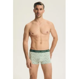 Táto súprava dvoch párov pánskych boxeriek je dokonalou kombináciou klasického a moderného štýlu. Súčasťou sú boxerky s módnou potlačou a model z hladkého materiálu, ktorý je skvelou voľbou na akúkoľvek príležitosť. Strih, ktorý zvýrazňuje postavu, zaručuje prispôsobenie telu a pohodlie počas celého dňa. Krátke nohavičky dodávajú modelu ľahkosť a zabezpečujú voľnosť pohybu, sú vhodné na každodenné nosenie aj na aktivity. Elastický pás s potlačou drží spodnú bielizeň pevne na mieste a zároveň predstavuje štýlový, športový akcent. Ide o praktickú a pohodlnú súpravu pre mužov, ktorí ocenia pohodlie a atraktívny vzhľad.