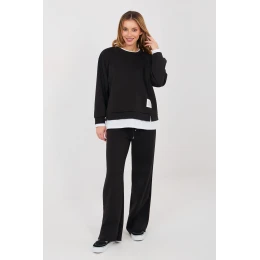 Sada oblečení ve stylu casual je skvělou volbou pro každodenní nošení pro ženy, které ocení pohodlí a moderní minimalismus. Hladký vzor zdůrazňuje univerzální charakter setu, díky čemuž se skvěle hodí jak na každodenní vycházky, tak i domácí pohodu. Vyrobený z vysoce kvalitní směsi polyesteru, viskózy a elastanu, set poskytuje pohodlí nošení, elasticitu a příjemné přizpůsobení se postavě. Materiál je měkký, odolný a odolný proti mačkání, což zajišťuje, že set si zachová estetický vzhled po dlouhou dobu. Mikina s dlouhým rukávem je doplněna kontrastními vložkami, které dodávají celku módní charakter. Dalším akcentem je nášivka umístěná vpředu, vlevo dole, zdůrazňující moderní styl setu. Kalhoty s dlouhou délkou a přímými nohavicemi a vysokým pasem krásně tvarují postavu a zajišťují pohodlí při nošení. V páse jsou šňůrky k zavázání, umožňující ideální přizpůsobení, a boční kapsy zvyšují funkcionalitu