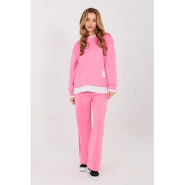 Sada oblečení ve stylu casual je skvělou volbou pro každodenní nošení pro ženy, které oceňují pohodlí a moderní minimalismus. Hladký vzor zdůrazňuje univerzální charakter setu, díky čemuž se skvěle hodí jak na každodenní vycházky, tak i domácí pohodu. Vyrobený z vysoce kvalitní směsi polyesteru, viskózy a elastanu, sada poskytuje pohodlí nošení, elasticitu a příjemné přizpůsobení se postavě. Materiál je měkký, odolný a odolný proti mačkání, což zajišťuje, že sada zachovává estetický vzhled po dlouhou dobu. Mikina s dlouhým rukávem je zakončena kontrastními vložkami, které dávají celku módní charakter. Dalším akcentem je nášivka umístěná vpředu, na levé straně dole, zdůrazňující moderní styl setu. Kalhoty s dlouhou délkou a přímými nohavicemi a vysokým pasem krásně tvarují postavu a zajišťují pohodlí nošení. V pasu jsou šňůrky k zavázání, umožňující ideální přizpůsobení, a boční kapsy zvyšují funk