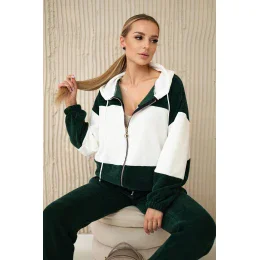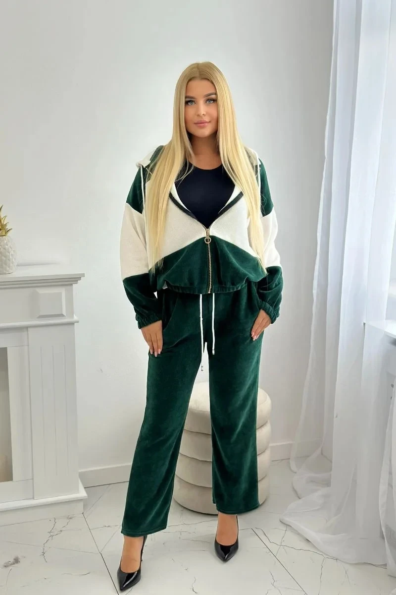 Súprava rebrovaná velúrová mikina + nohavice tmavozelená
