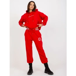 Červená tepláková súprava s kapucňou.