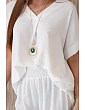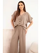 Italská dvoudílná souprava skládající se z halenky a kalhot je elegantní souprava, která dodá kouzlo a styl každému stylingu. Rozevlátá halenka dodává jemnou ženskost, zvýrazňuje postavu a zároveň zajišťuje volnost pohybu. Klasický střih kalhot dokonale ladí s elegantní halenkou a tvoří tak ucelený a stylový celek. Navíc je přívěsek okouzlujícím detailem, který dodává této sadě originalitu a charakter a vytváří harmonickou kompozici. Jde o elegantní doplněk, který zdůrazňuje jedinečnost a smysl pro detail v celém stylingu. Tato italská souprava je ideální pro mnoho příležitostí, od obchodních schůzek až po romantická rande. Toto je rafinovaná volba pro lidi, kteří oceňují eleganci a pohodlí v jednom. Velikost je univerzální a padne ženám, které nosí velikost S, M nebo L.