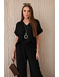 Súprava s náhrdelníkom blúzka + nohavice čierna