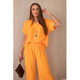 Súprava s náhrdelníkom blúzka + nohavice svetlo oranžová