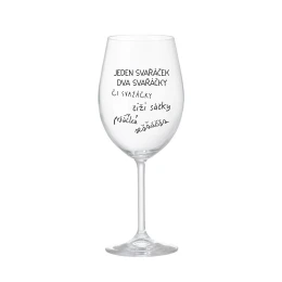 Vinná čirá sklenice s originálním motivem SVAŘÁČEK je krásným a osobitým dárkem, které ale využijete i Vy sami třeba ve chvílích, kdy si budete chtít zpříjemnit náročný den. Tyto originální vinné sklenice jsou totiž nejen pro výjimečné události, ale i pro běžné večery, které si chcete zpříjemnit sklenkou dobrého vína. Jistě proto potěší každého milovníka vína, i toho, kdo si umí svůj život vychutnat plnými doušky. Materiál sklo. Vyrobené s láskou v ČR