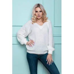 Voľný oversized sveter s dlhými rukávmi. Sveter so srdiečkovým výstrihom.