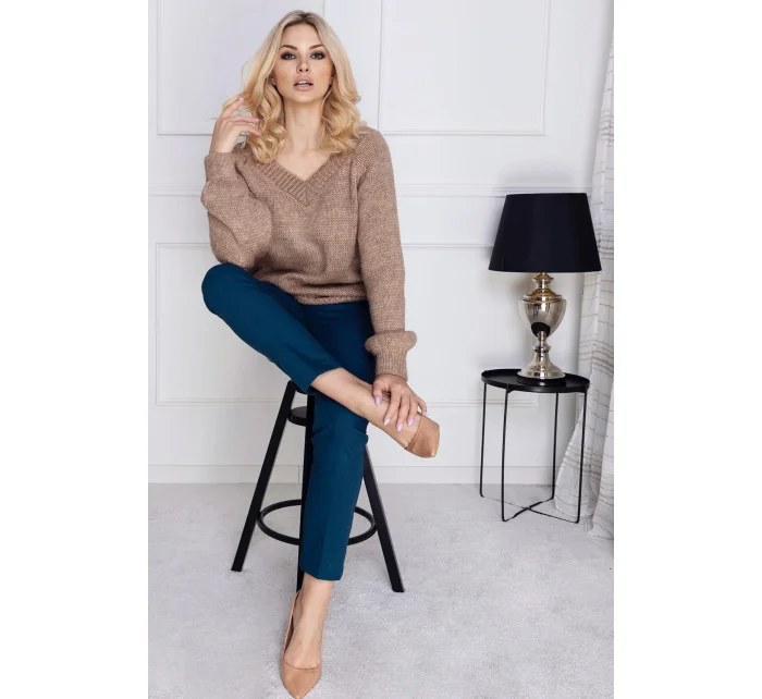 Voľný oversized sveter s dlhými rukávmi. Sveter so srdiečkovým výstrihom.