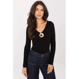Tento elegantný dámsky sveter je vyrobený z elastickej zmesi viskózy a elastanu, ktorá zaručuje pohodlie a prispôsobenie postave. Model má štandardnú dĺžku, dlhé rukávy a výstrih do V zdobený ozdobným prvkom na prednej strane, ktorý mu dodáva jemnú eleganciu. Sveter je vyrobený z pruhovanej tkaniny s hladkým, dominantným vzorom, vďaka čomu pôsobí klasicky a nadčasovo. Bez zapínania, tento model má jednoduchú formu a zároveň je univerzálny. Ideálny na každodenné nosenie, do práce, ako aj na slávnostnejšie príležitosti.