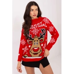 Tento jedinečný dámsky sveter je dokonalou kombináciou ležérneho štýlu s elegantnými akcentmi, vďaka čomu je ideálny na každodenné nosenie, ako aj na návštevy alebo večierky. Dominantná vianočná potlač v kombinácii s nápisom dodáva celému kúsku jedinečný, sezónny charakter. Sveter je vyrobený z kvalitnej zmesi akrylu a polyamidu, je mäkký na dotyk a príjemný na nosenie. Štandardná dĺžka a dlhé rukávy zaručujú pohodlie a výstrih typu polo jemne zvýrazňuje krk, čím dodáva štýlový vzhľad. Model nemá zapínanie, vďaka čomu sa dá ľahko obliecť a je ideálny na rôzne stylingy. Je ideálnou voľbou pre ženy, ktoré rady kombinujú pohodlie s módnym, vianočným vzhľadom.