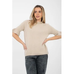 Tento ležérny dámsky sveter je štýlovým a pohodlným návrhom na každý deň a do práce. Je vyrobený z príjemnej zmesi akrylu, polyamidu a mäkkej baby alpaky, čo zaručuje pohodlie pri nosení, mäkkosť a estetickú príťažlivosť. Model štandardnej dĺžky s okrúhlym výstrihom pôsobí klasicky a univerzálne. Krátke rukávy s efektnými volánmi dodávajú svetru ženský šarm a jemnú eleganciu. Vďaka hladkému vzoru ho možno ľahko kombinovať s mnohými štýlmi, a to s elegantnými nohavicami alebo sukňami do práce aj s džínsami na každý deň. Sveter nemá žiadne zapínanie, čo zdôrazňuje jeho minimalistický charakter.